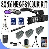 Sony NEX-FS100UK Super 35mm Sensor Camcorder (with Lens) + 2-32GB SDHC Memory Cards (Double Memory Kit!!) + 3 Extra Extended Life Batteries + Ac/Dc Rapid Charger + 3 Piece Filter Kit + USB Card Reader + Shock Proof Deluxe Case + Professional Full Size Tripod + Lens Pen Cleaner + Accessory Saver Bundle!